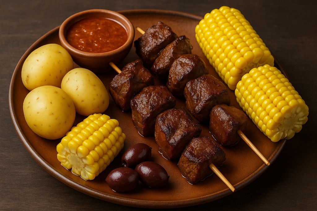 Гарнир. Отварите картофель и кукурузу, подавайте вместе с антикучос.