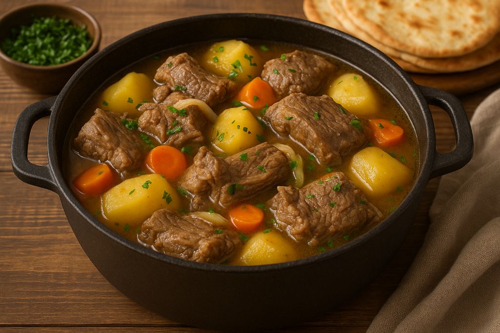Черкесское жаркое — одно из самых узнаваемых блюд карачаево-черкесской кухни. Это сытное, ароматное и очень домашнее блюдо, которое готовят на медленном огне, позволяя баранине стать мягкой, а овощам — вобрать весь вкус и сок мяса. В отличие от привычных рагу, черкесское жаркое всегда готовится крупными кусками, без излишних специй и сложных соусов. Главная идея — раскрыть вкус хорошей баранины и простых овощей.