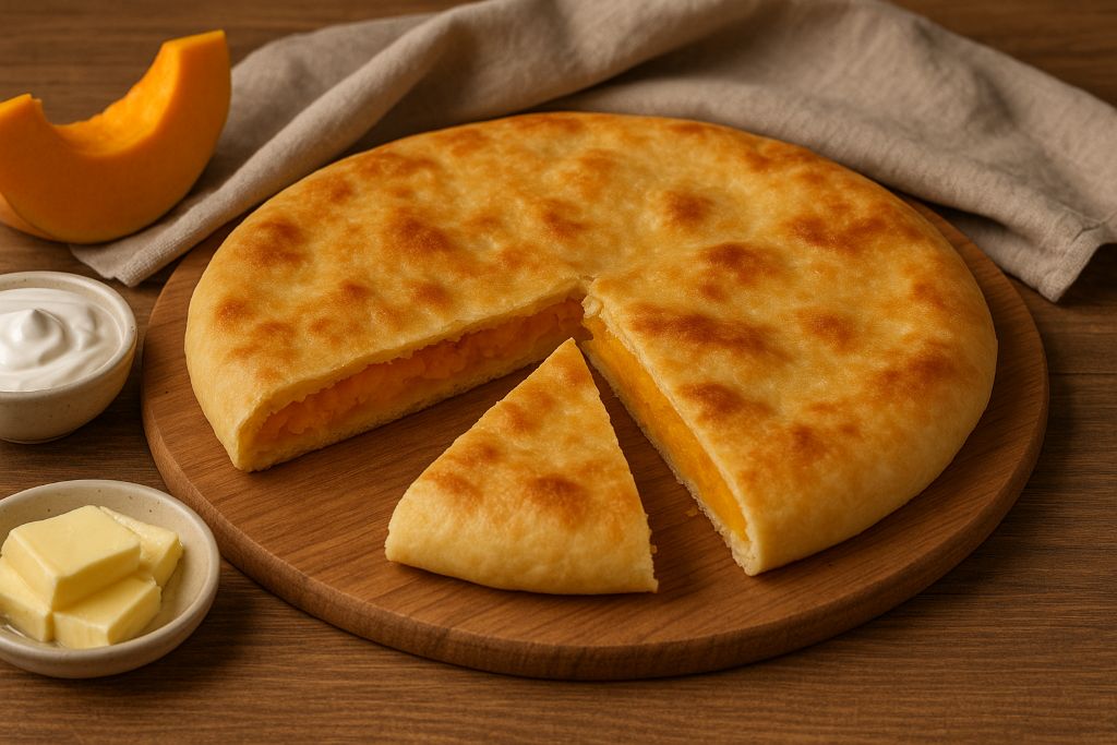 Пирог с тыквой — один из самых мягких, ароматных и нежных пирогов кабардино-балкарской кухни. Его готовят чаще осенью и зимой, когда тыква самая сладкая и сочная. Традиционно в Кабардино-Балкарии любят простые по составу пироги, где главное — натуральный вкус продуктов. Такой пирог тонкий, мягкий, с тёплой сладостью тыквы и очень уютным ароматом.