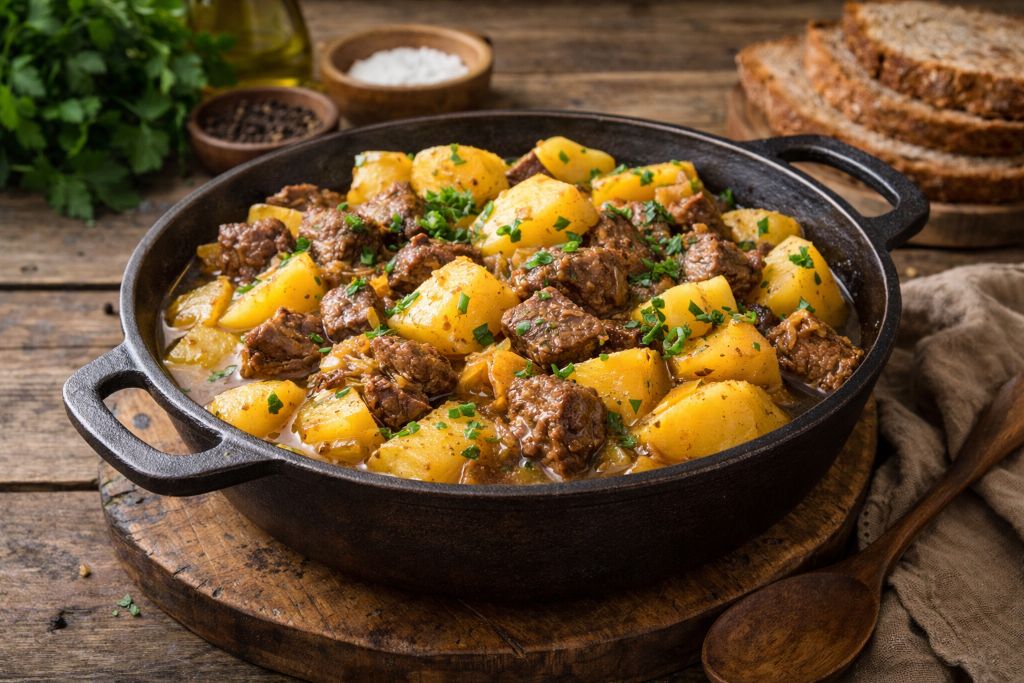 Тушёная говядина с картофелем — классическое сытное блюдо, характерное для домашней кухни Дальнего Востока. В Еврейской автономной области его готовят просто, без сложных соусов, делая акцент на натуральном вкусе мяса и овощей. Долгое томление позволяет говядине стать мягкой, а картофелю — впитать насыщенный мясной бульон.