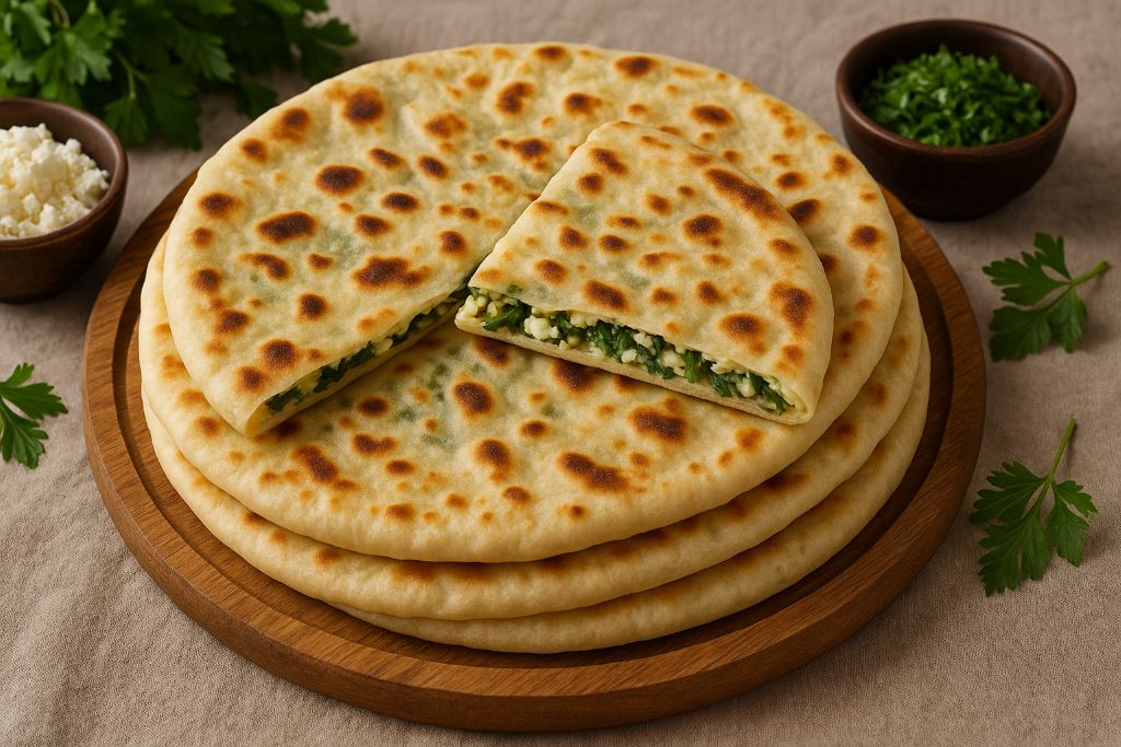 Хычины с зеленью и сыром — яркое, ароматное блюдо, которое одновременно простое и невероятно вкусное, передающее дух карачаево-черкесской кухни.