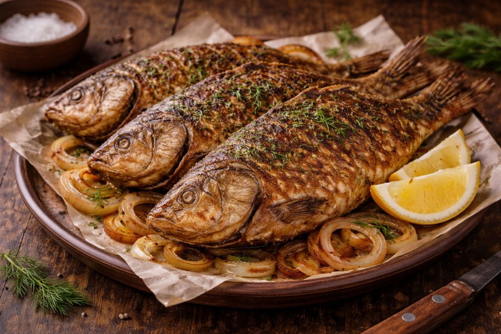 В кухне Амурская область речная рыба занимает особое место. В многочисленных притоках Амура водится карась — неприхотливая и вкусная рыба, которая часто становится основой простых домашних блюд. Один из самых распространённых способов приготовления — жарка на сковороде до золотистой корочки. Благодаря этому способу рыба остаётся сочной внутри и ароматной снаружи.