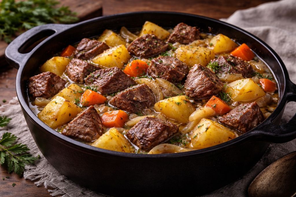 Снимите жаркое с огня и дайте настояться под крышкой 10–15 минут — вкус станет глубже.