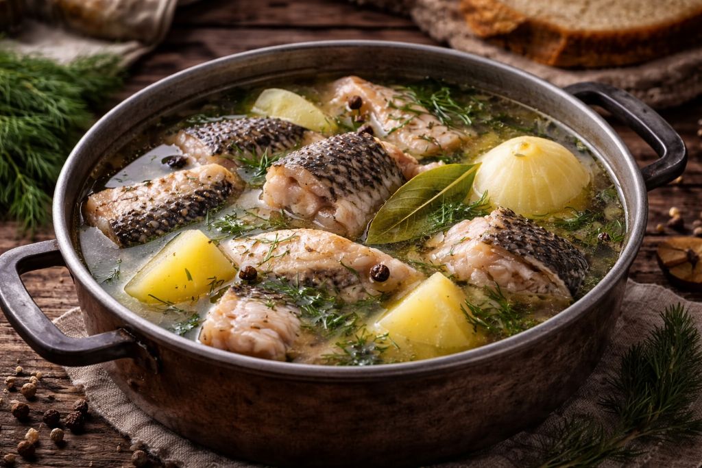 Картофель в классическом варианте отсутствовал, так как он появился в регионе относительно поздно. В домашних условиях его можно добавить, но умеренно. Лук используют минимально — иногда целиком, чтобы он отдал аромат, но не доминировал. Важный момент — медленное кипение: уха не должна бурлить.